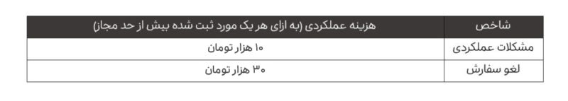 - مجموعههایی که کمتر از ۳۰ سفارش موفق در طول ماه داشته باشند، پاداش و هزینه عملکردی تعلق نخواهد گرفت.